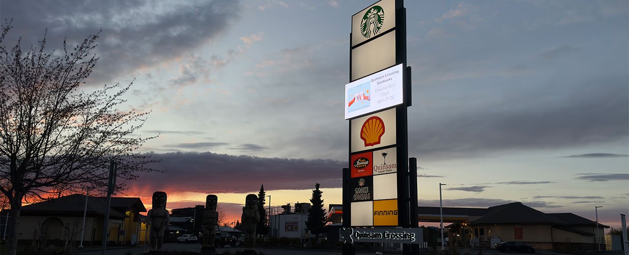 A key feature of the Quinsam Crossing project was the double-sided electronic message center.