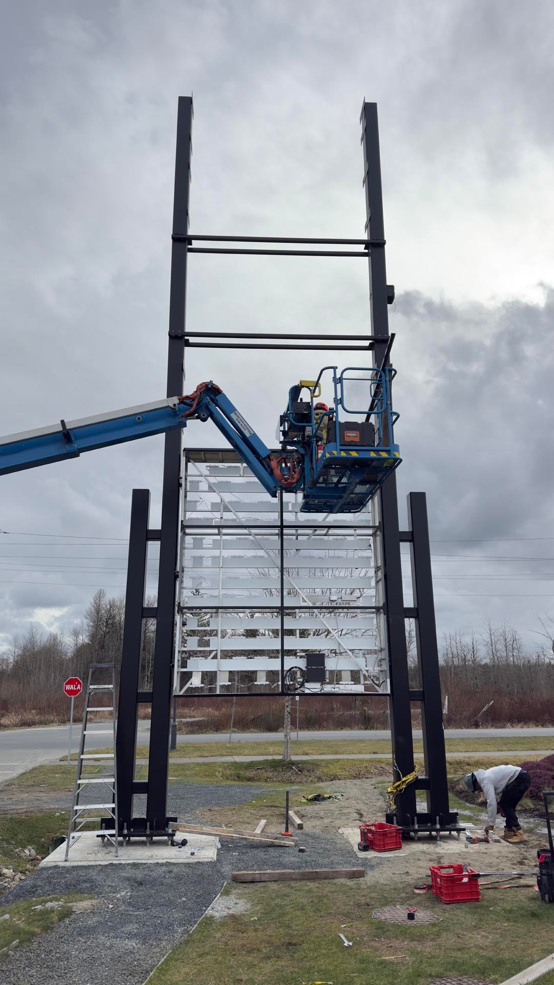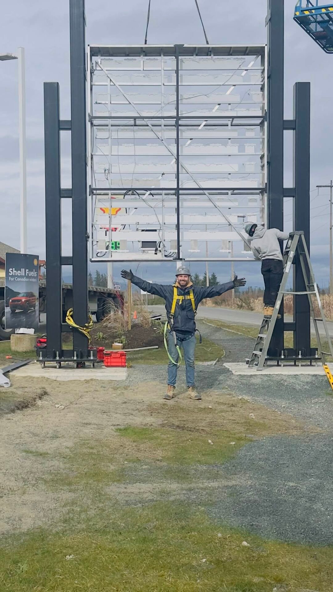 The Quinsam Crossing project reflects the standard we bring to every job—precision at every stage, from initial concept and engineering to foundation work, fabrication, illumination, transport, and final installation.