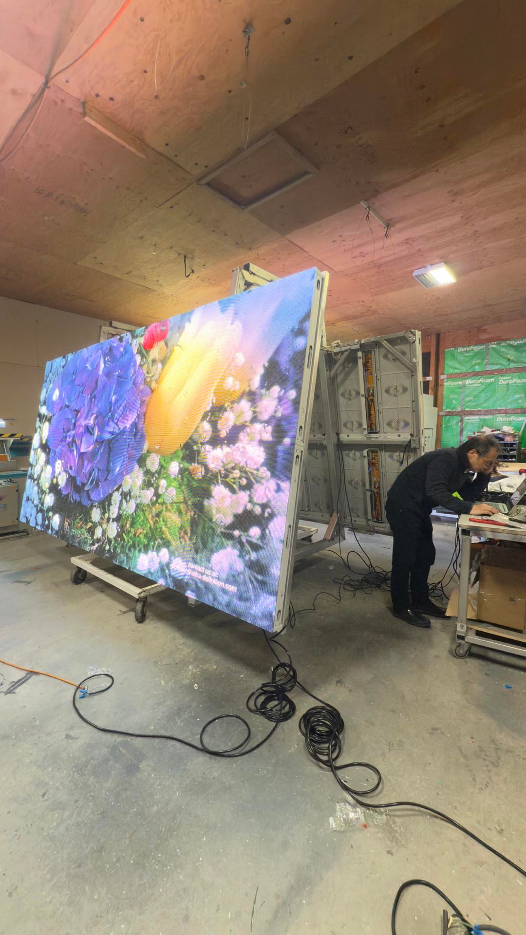 Once assembled, the entire system was wired and tested in-house. Working alongside LED technicians, we verified that all panels, controllers, and communication systems were fully operational prior to installation.
